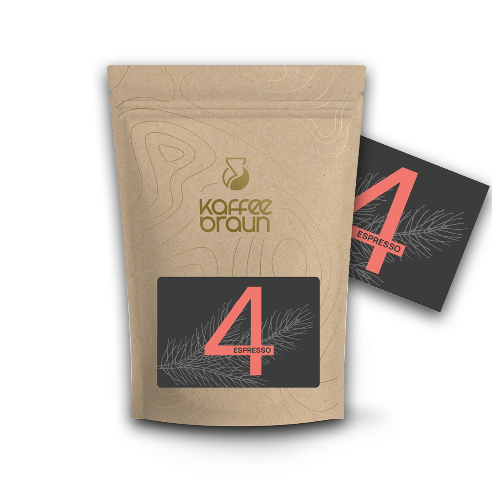 Zu jedem der vier Adventssonntage finden Sie im Kalender ein liebevoll verpacktes Espressopäckchen – jeweils für mehrere Tassen Genuss.