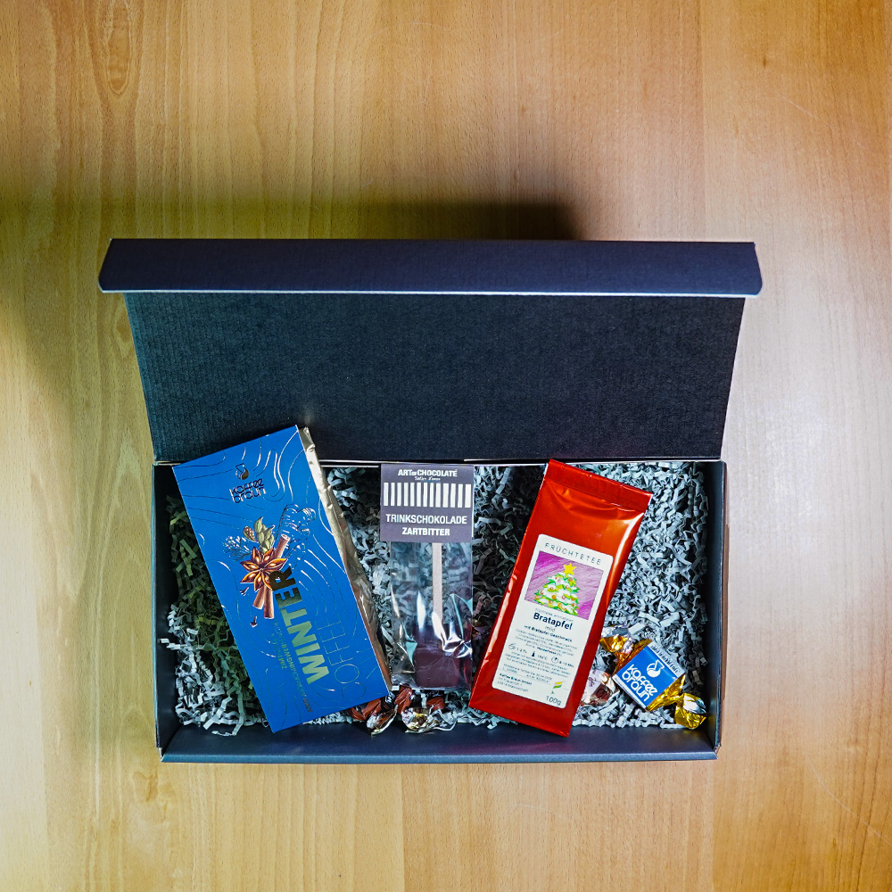 Das Geschenkset „Winterzeit“ ist eine liebevoll zusammengestellte Verwöhnoase für all diejenigen, die in der kalten Jahreszeit die warmen Momente besonders schätzen. Es ist das perfekte Mitbringsel oder Präsent für Freunde, Familie oder Geschäftspartner – ein Set, das nicht nur den Gaumen, sondern auch das Herz erwärmt.