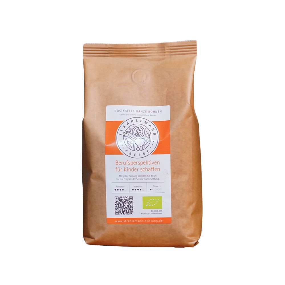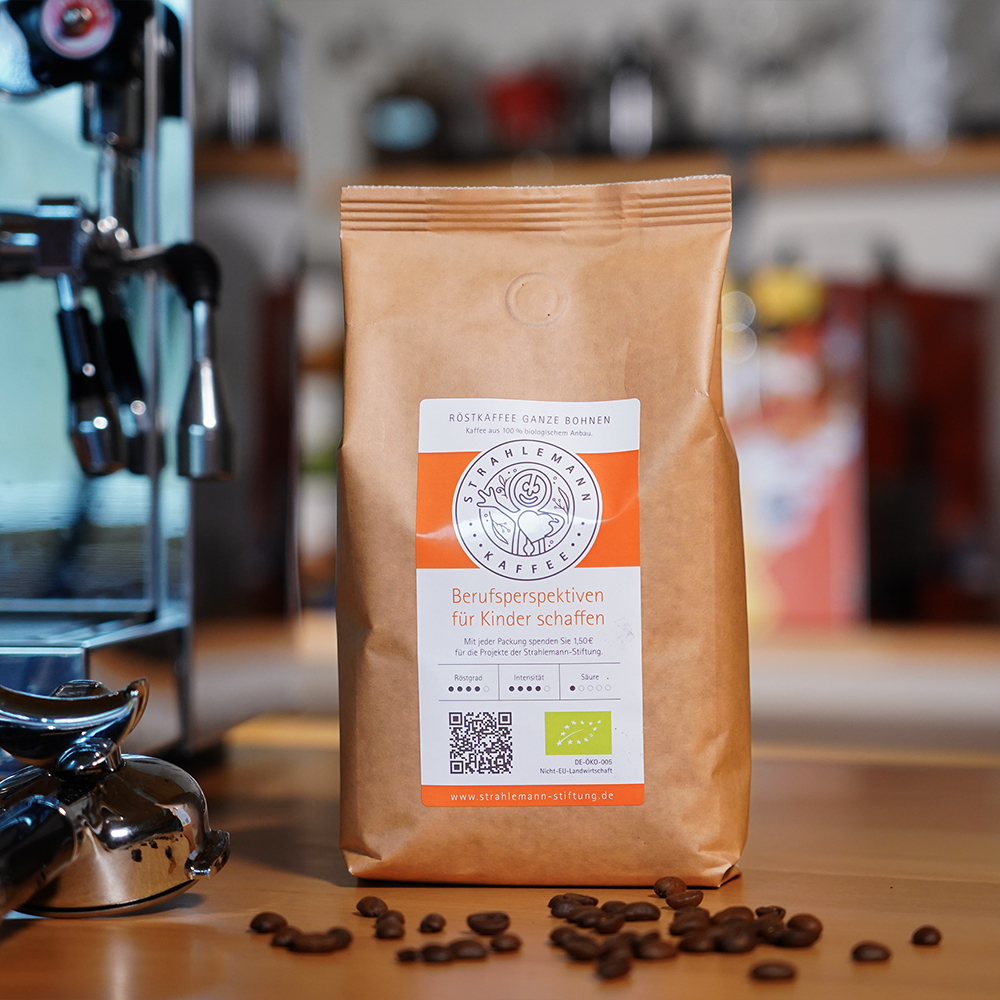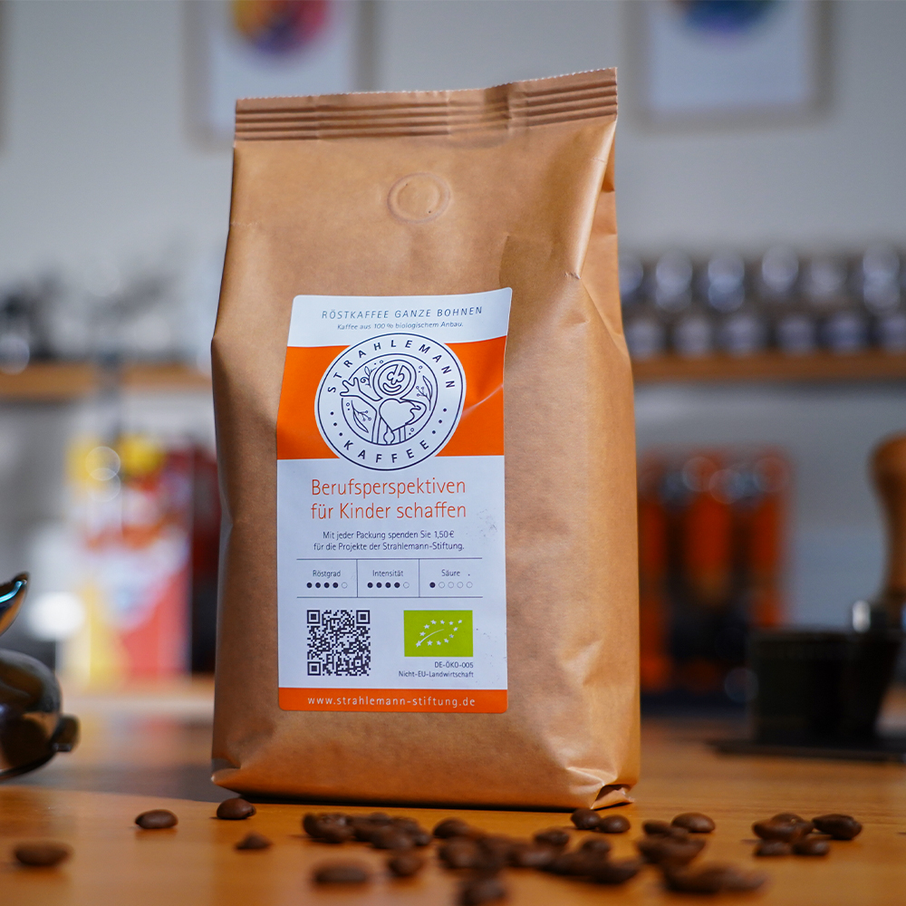 Dieser Bio-Kaffee aus Indien ist unser Projektkaffee zur Unterstützung der Strahlemann-Stiftung. Erdig im Geschmack, mit feinen Noten von Zartbitterschokolade. Mit jedem Kauf fließen 1,50 € pro kg in die Talent Company, einen Fachraum an Schulen, in dem Berufsorientierung praktisch wird.